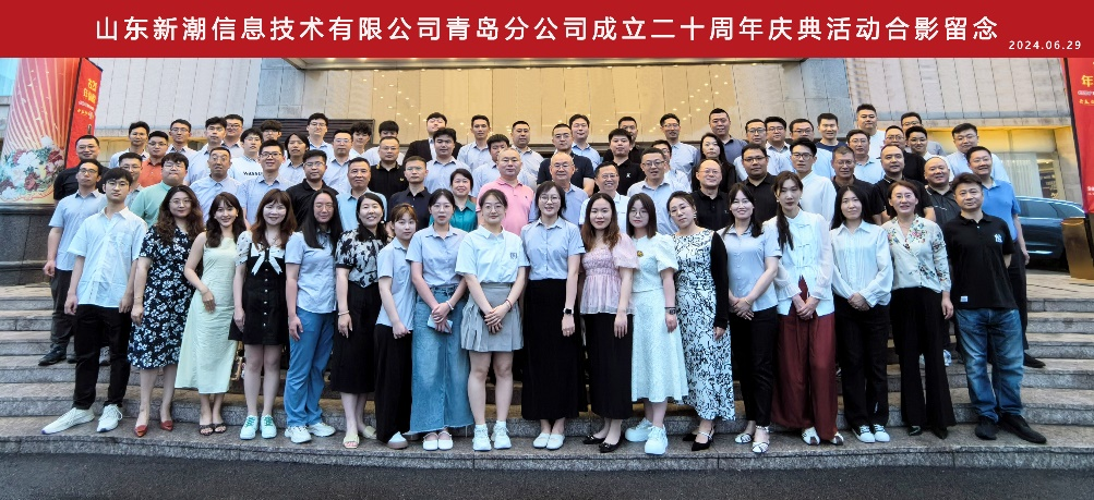 2024年6月,新潮信息青島分公司舉辦成立二十周年慶典,公司管理人員和全體員工歡聚一堂,共敘20年走過的風(fēng)雨歷程,共繪未來發(fā)展新藍圖。