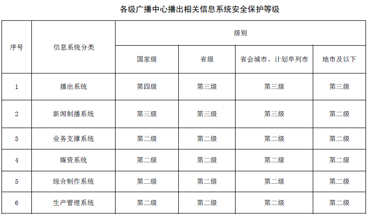 需要特殊說明的是,滿足基本安全防護(hù)要求是保證信息系統(tǒng)具有相應(yīng)等級(jí)安全保護(hù)能力的前提。但針對(duì)于不同的播出單位來說,廣播電視相關(guān)信息系統(tǒng)是一個(gè)整體,除了分層面采取各種安全措施,還應(yīng)從播出單位信息系統(tǒng)的業(yè)務(wù)特殊性等方面考慮總體性要求,保證信息系統(tǒng)的整體安全保護(hù)能力。